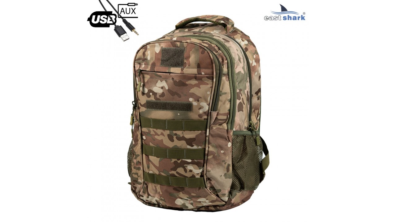 Рюкзак EastShark S-016-3 (USB, AUX) зелёный камуфляж