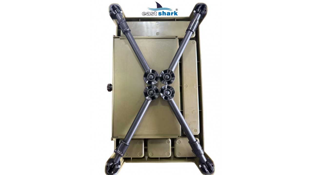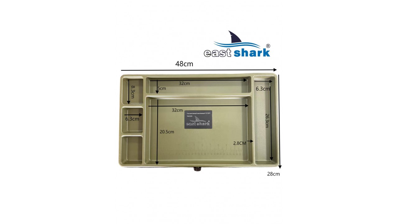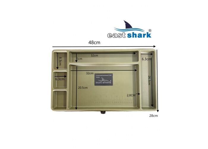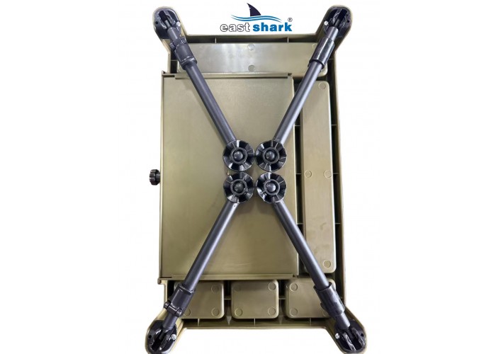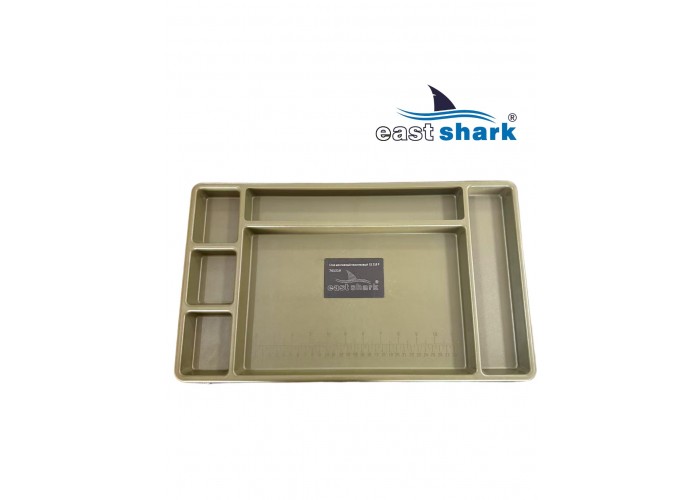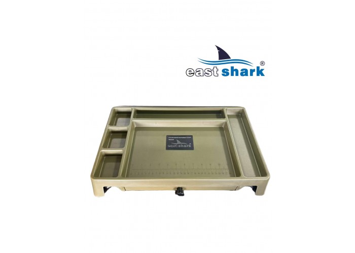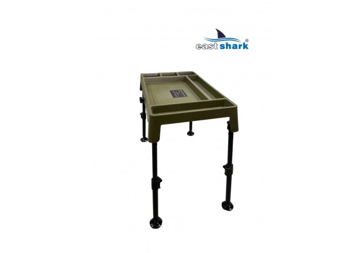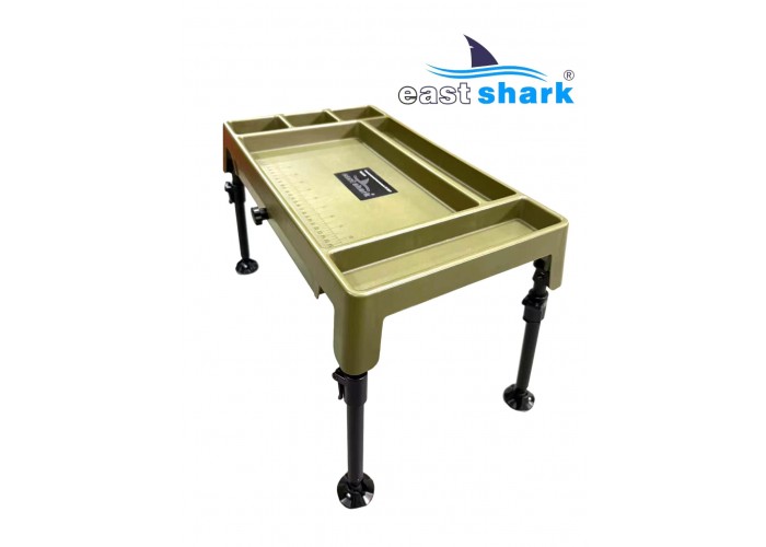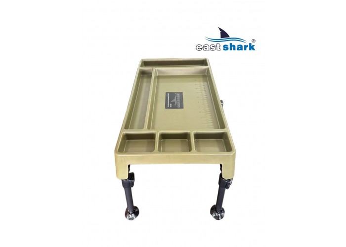Изготовленный из высококачественного пластика, столик весит 1,8 кг и имеет 6 отсеков разной площади. Встроенный ящик-поводочница обеспечивает удобное хранение необходимых принадлежностей. Также столик оснащен лапами на ножках, что предотвращает его застревание в грязи и сыпучей почве.