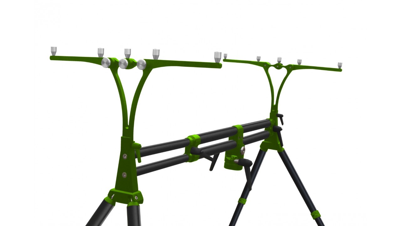 Длинна регулируемой рамы 80-140 см. Есть функция "качели" позволяющая в любой момент поднять или опустить концы удилищ на род-поде.